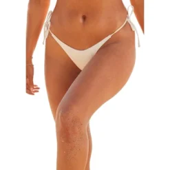This is Camille’s take on the itsy-bitsy bikini! Shaped to wear high or low on the hips. Whichever way you choose, this style is super sleek and Fun. The minimized coverage means barely-there tan lines. It’s high cut for a long, leggy look and the side-ties are adjustable so you can customize the fit.