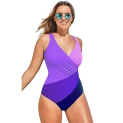 Sometimes wearing the right swimsuit can make all the difference. Take our surplice one piece, it has a plunging V-neck and is color blocked to expertly accentuate your shape in the most flattering proportions. Plus, it has wide shoulder straps for full bust support and a tummy smoothing Power Mesh lining.