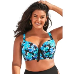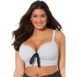 This bikini top is as pretty, as it is supportive. Designed with a keyhole accented tie-front, it has a built-in underwire bra with molded cups for your comfort. It also features adjustable straps so you can customize the fit. Pair it with your favorite swim bottoms for the coverage and look you want.