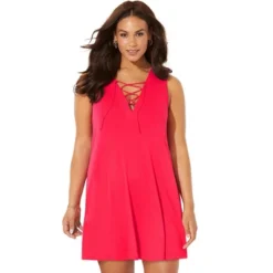 Say hello to Fiona, the perfect lightweight cover up for throw-on-and-go style! With lovely lace-up details on the deep V-neckline and a flowy A-line silhouette, this soft jersey knit style looks amazing on every figure. Wear it to the beach, the boardwalk, the pool and anywhere that calls for a cute, comfy look.