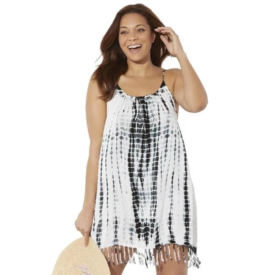 Easy and relaxed like a warm summer day, this breezy tie dye cover up will become your new fave! Details like adjustable straps, crisscross back and boho-inspired fringe hemline make it a fun and flattering choice to wear over your swimsuit at your next pool or beach day. Throw on a floppy hat and you’re ready to greet the sun!