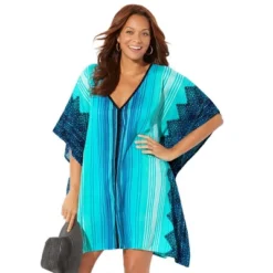 The Dolman sleeve Kelsea cover up is the epitome of cool-girl style! This easy, breezy tunic is a beach bag must-have with a relaxed fit, lightweight rayon woven fabric and double side slits for easy movement. It’s the perfect throw-on-and-go style for the beach to the boardwalk to poolside happy hour. Wear over all of your favorite swimsuits.