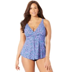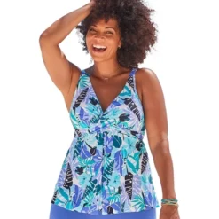 Hit the beach in total confidence with our V-Neck Twist Tankini Top! A faux flyaway front gives this top an easy, flowy silhouette while the shelf bra and adjustable straps provide support and comfort. Pair this breezy style with your favorite swim bottoms and create the tankini of your dreams. Like all Swimsuits For All tankini tops, this style is designed by the swim experts for an unparalleled fit.