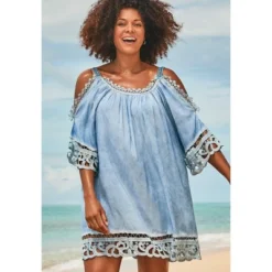 “Don’t forget to pack this cover-up in your beach bag. It’s super cute and artfully designed with laced crochet detail and an open shoulder. The fit is relaxed. Its style embodies a beachy mood. Throw over your favorite swimsuit and go have a fun-filled sunny day adventure.